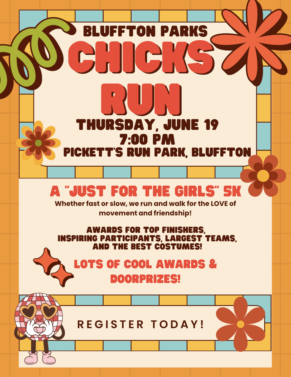 - 18 : Chicks' Run. 7 pm. Pickett's Run Park (Online Registration)
