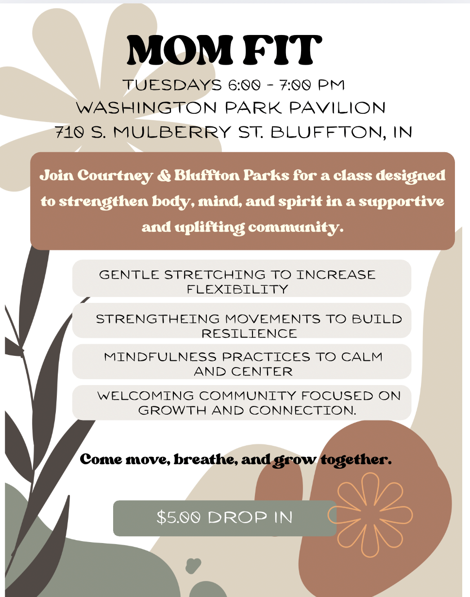 - Mom Fit - Tuesdays at 6 pm, Washington Park Pavilion. $5 drop in.