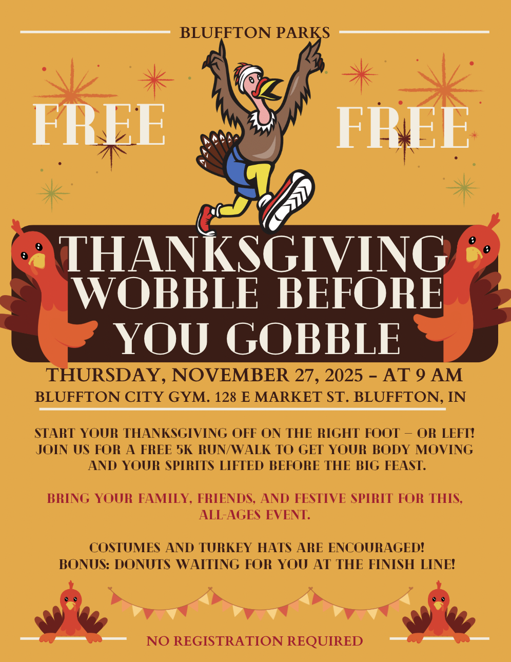 - 27 : Wobble Before You Gobble 5K Run/Walk. Free